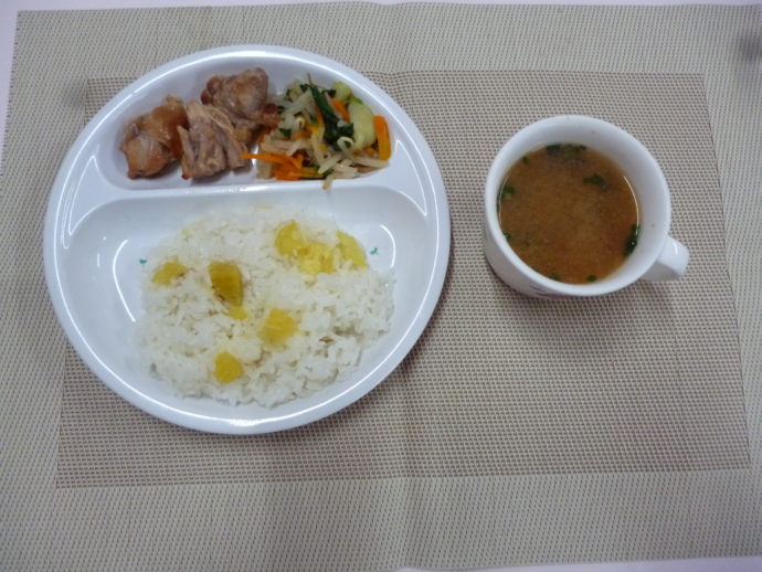 令和元年9月13日(金)の献立 2019/09/13 あいにくの天気となってしまいましたが、今日は十五夜メニューとなっています! 今日の給食は、「さつま芋ごはん」、「鶏肉の照り焼き」、「チンゲン菜のお浸し」と 「大根となめこのみそ汁」 おやつは、「牛乳」、「お月見団子」と「満月ポン」です。 ひかり組さんは、自分たちで「お月見団子」を作って食べましたよ!