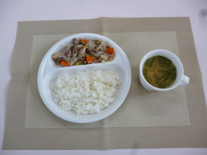 今日の給食は、「すき焼き煮」と「厚揚げのみそ汁」 おやつは、「牛乳」と「お楽しみおやつ」です。