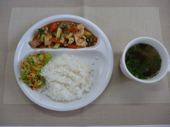 令和2年10月22日(木)の献立 2020/10/22 今日の給食は、「豚肉と豆腐の味噌炒め」、「キャベツのごま和え」と「わかめのすまし汁」 おやつは、「牛乳」、「スイートポテト」と「ぽりぽり小魚」です。 16日の遠足で、つき組さんとひかり組さんが掘って持って帰ってきてくれた「さつまいも」を使って 今日のおやつは「スイートポテト」にしました!